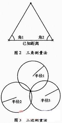 距离估计法是利用三角形的特点来估计待定位体的位置的算法。如图2所示,三角测量法通过测量不少于两个参考点所接收信号的到达角度,形成角度的两条直线的交点即是所估计的位置。如图3所示,三边测量法通过测量待定位点到至少3个参考点的距离来估计待定位点的位置。这种测量威廉希尔官方网站 利用接收信号接度(Received Signal Strength,RSS)、信号到达时间(Time Of Arrival,TOA)、信号到达时间差(Time-Difference Of Arrival,TDOA)和接收信号相位(Received Signal Phase,RSP)等方法。