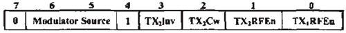 将T X2CW 位置0,TX2引脚上输出信号的是13.56M Hz 的调制载波。将TX2RFEn置1,TX2引脚上输出调制有传送数据的13.56 MHZ载波。将TX1RFEn位置1,TX1引脚上输出调制有传送数据的13.56 MHz载波。