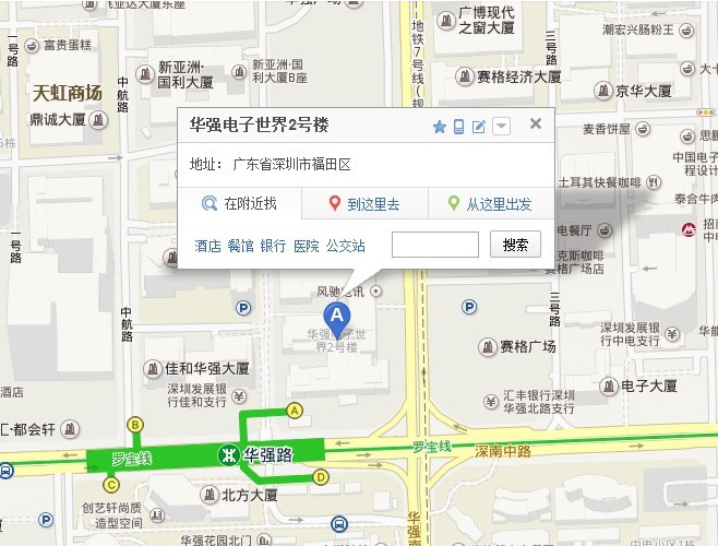罗宝线:乘坐罗宝线到华强路站下车,从地铁A出口直走五十米,左转直行到中域电讯旁边的观光电梯直上七楼。