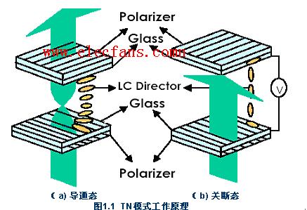 一、工作原理和概念术语 1、液晶显示屏的工作原理 液晶(Liquid Crystal):是一种介于固态和液态之间的具有规则性分子排列,及晶体的光 学各向异性的有机化合物,液晶在受热到一定温度的时候会呈现透明状的液体状态,而冷却则 会出现结晶颗粒的混浊固体状态