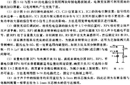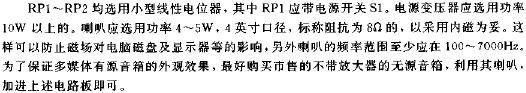 755 笔者最近自制了一个廉价的电脑有源音箱,不但能满足上述的功能要求,而且能内置在机箱内部,通过一个音量开关就能控制音箱电源的开、关和音量大小。