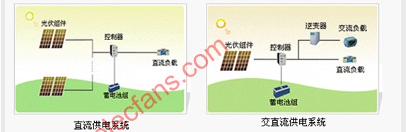 如上图所示,太阳能发电系统由太阳能电池组件、太阳能控制器、蓄电池(组)组成。如输出电源为交流220V或110V,还需要配置逆变器。