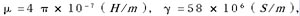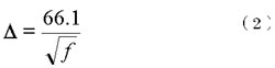 式中 △为穿透深度(mm),ω为角频率,ω=2πf(rad)。μ为导线磁导率(H/m),γ为导线导电率(S/m)。