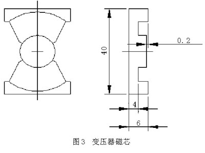 我们经过反复比较和计算,选择了PQ40型磁芯,并磨制成我们需要的尺寸。如图3,其AP值仅为0.69。