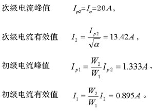 忽略激磁电流等,初、次级电流有效值按单向脉冲方波计算,