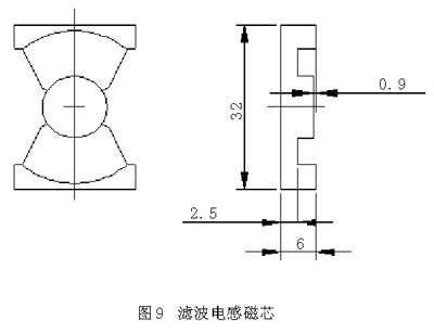在滤波电感的设计中,我们采用PQ32型磁芯,磨制成我图9所示的形状和尺寸。