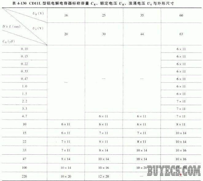 CD11L型铝电解电容器具有漏电流小、损耗小、高低温性能可靠等特点,适用于家用电器及工业电子设备的电路中。其外形如图4-85 所示,其主要特性参数见表4-129 表4-131 。