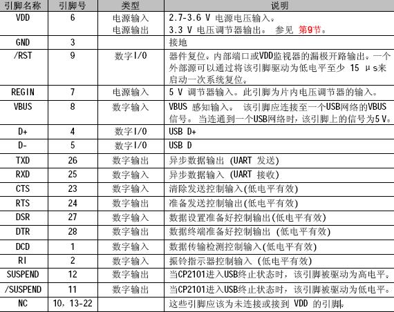 CP2101/CP2102的引脚定义
