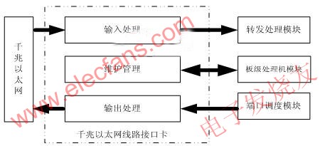 此外,输入处理FPGA是千兆以太网线路接口卡模块设计的重点之一,主要的功能是将各种标准的MAC帧数据格式转换为网络层统一的数据格式,为网络层处理屏蔽掉底层物理接口
