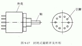 旋转开关在结构上除了如图9-15 所示的敞开式结构外,还有封闭式结构,它的外形如图9-17 所示。