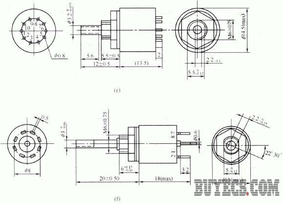 表9-15 列出了一些旋转开关的主要特性参数,它们的外形结构如图9-18 所示。