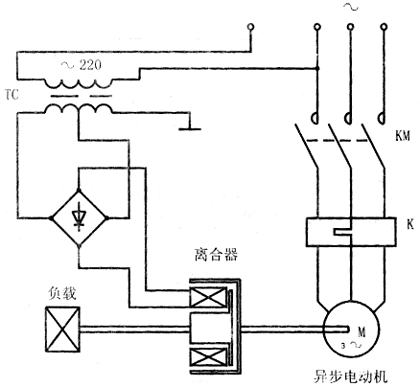 在阻力较大的拖动系统中,例如J2203胶印机,电动机往往不能带负载直接起动,这时可在起动前先断开离合器的励磁电源,使鼠笼电动机先空载起动,然后再接上励磁电源就可起动了。