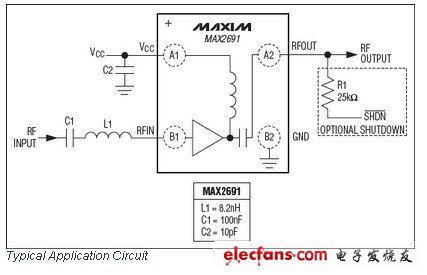 MAX2691低噪声放大器(LNA)设计用于GPS L2波段产品。采用Maxim先进的SiGe工艺设计,在提供高增益和低噪声系数的同时,获得最高的输入参考1dB压缩点和3阶截点。MAX2691具有17.5dB高增益以及不到1dB的噪声系数。